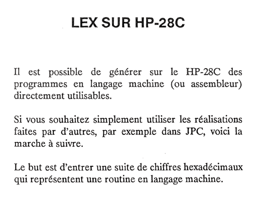 « LEX sur HP28c », JPC, n° 50, Décembre 1987-Janvier 1988, pp. 8-9.