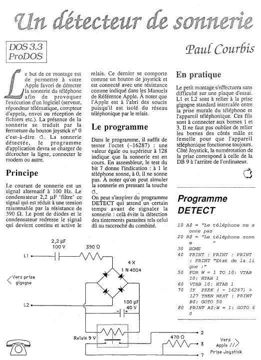« Un détecteur de sonnerie », Pom’s, n° 32, Septembre-Octobre 1987.